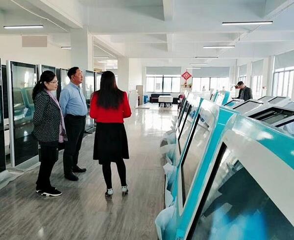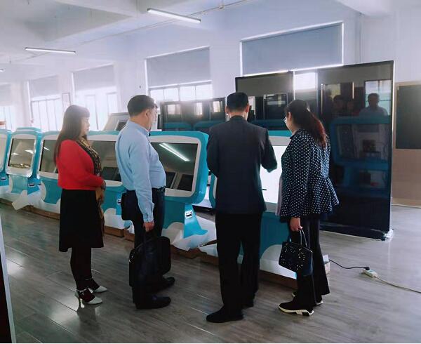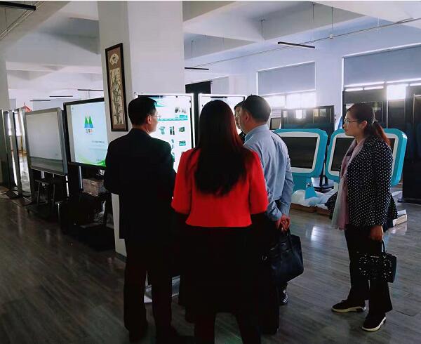 董事長(zhǎng)張紅玲女士在給領(lǐng)導(dǎo)介紹全國(guó)幼兒園定制的觸控互動(dòng)終端