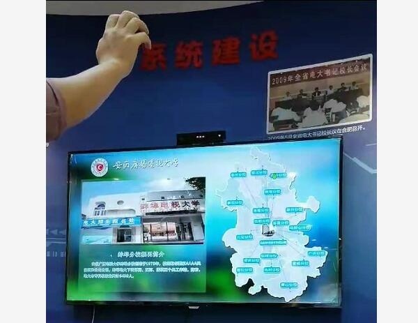 體感互動(dòng),設(shè)備識(shí)別手勢(shì)操作,來操控觸摸設(shè)備,讓人體驗(yàn)隔空遠(yuǎn)距離來互動(dòng)體驗(yàn)設(shè)備。展現(xiàn)出展廳的科技感。