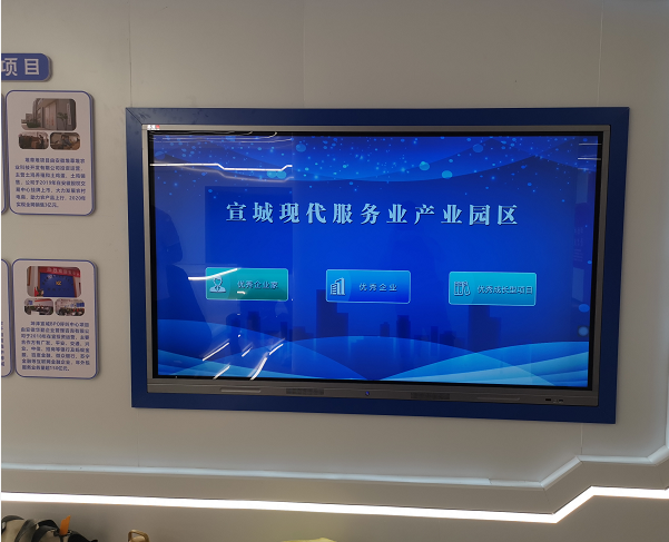宣城現(xiàn)代服務(wù)業(yè)產(chǎn)業(yè)園管委會(huì)黨建展廳65寸壁掛觸摸一體機(jī)